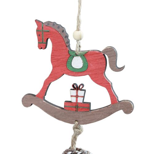 Dekoračný hojdací koník drevená závesná dekorácia Vianočná červená 37cm 2ks
