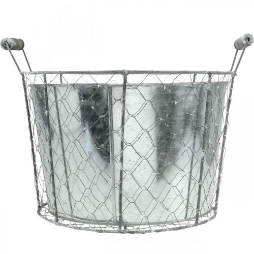 Drôtený košík s kovovou miskou, kvetináč, jarná dekorácia strieborná, praná biela, shabby chic Ø30cm V25,5cm