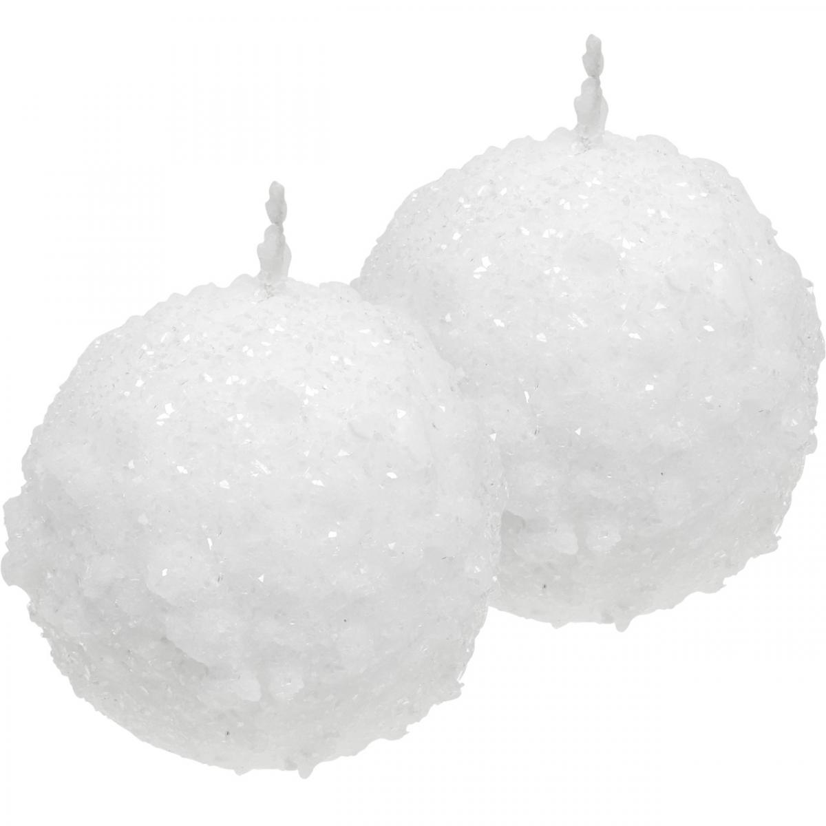 Adventné sviečky, dizajn snehovej gule, biele guľové sviečky Ø80 mm, sada 4 kusov, vianočná dekorácia, zimná mágia