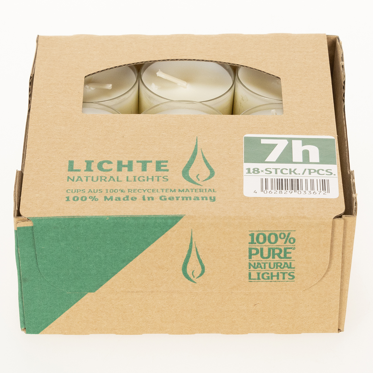 Názov produktu: Čajové sviečky PURE Nature Lights z repkového vosku, prírodné, doba horenia 7 hodín, 18 kusov