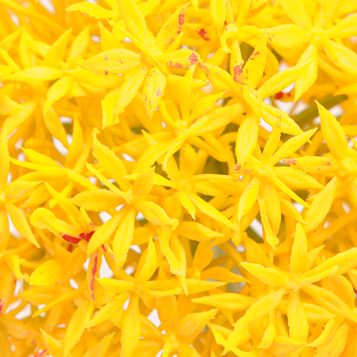 Naše umelé allium v žiarivo žltej farbe je dokonalým zvýraznením vašej dekorácie. S dĺžkou okolo 80 cm a detailne prepracovaným okrúhlym dáždnikom zloženým z nespočetných okvetných lístkov v tvare hviezdy tento aranžmán nadchne nielen svojím vzhľadom, ale aj dlhou životnosťou. Či už v obývačke, vo vstupnej časti alebo ako vrchol záhradnej párty – žiarivo žltý kvet zaručene upúta pozornosť každého. Allium je vyrobené s rukoväťou, ktorá je z vnútornej strany vystužená kovovým jadrom a z vonkajšej strany je pokrytá zeleným plastom. Nadčasový dizajn umožňuje jednoduchú integráciu do širokej škály štýlov nábytku, ako je Scandi alebo moderný. Tieto umelecké kvety vnesú do vášho každodenného života farbu, sviežosť a nádych leta.