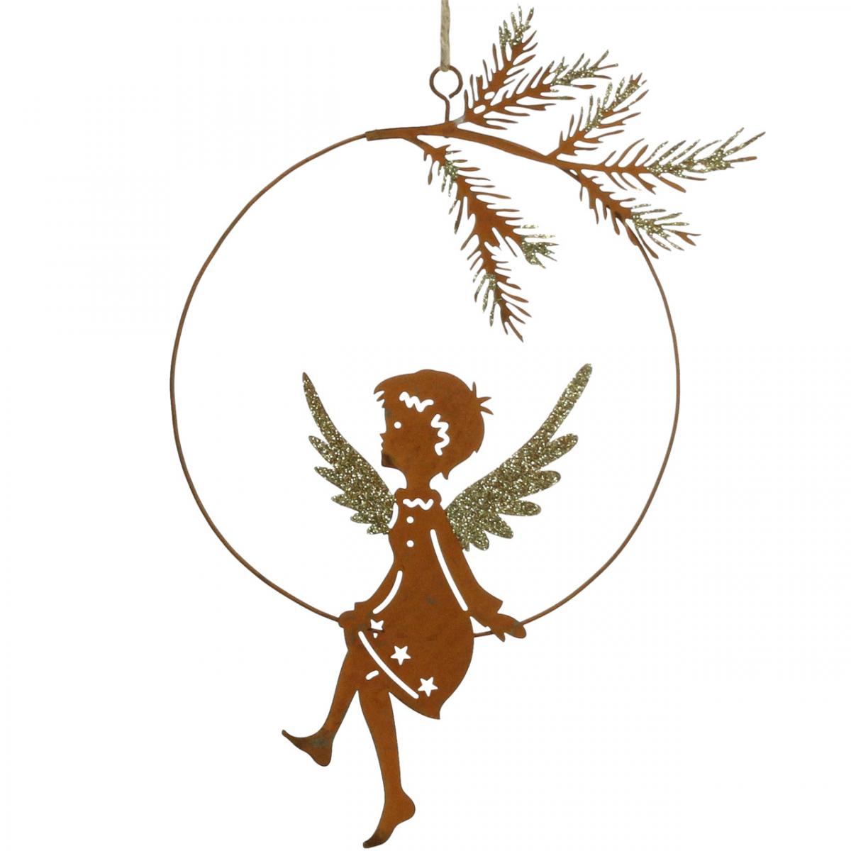 Názov produktu: Anjel ozdobný prsteň kovová hrdza vianočná dekorácia 23,5x16,5cm 3 ks