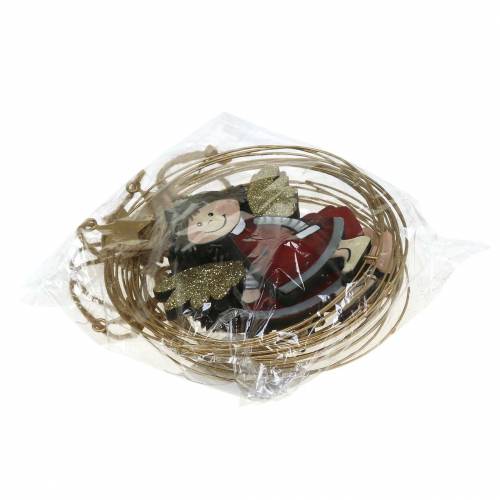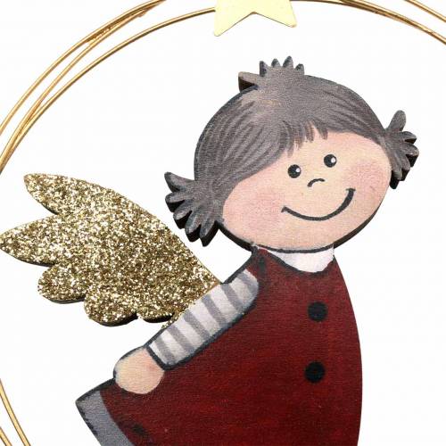Anjel v ozdobnom krúžku na zavesenie drevo, kov Ø14cm 6ks