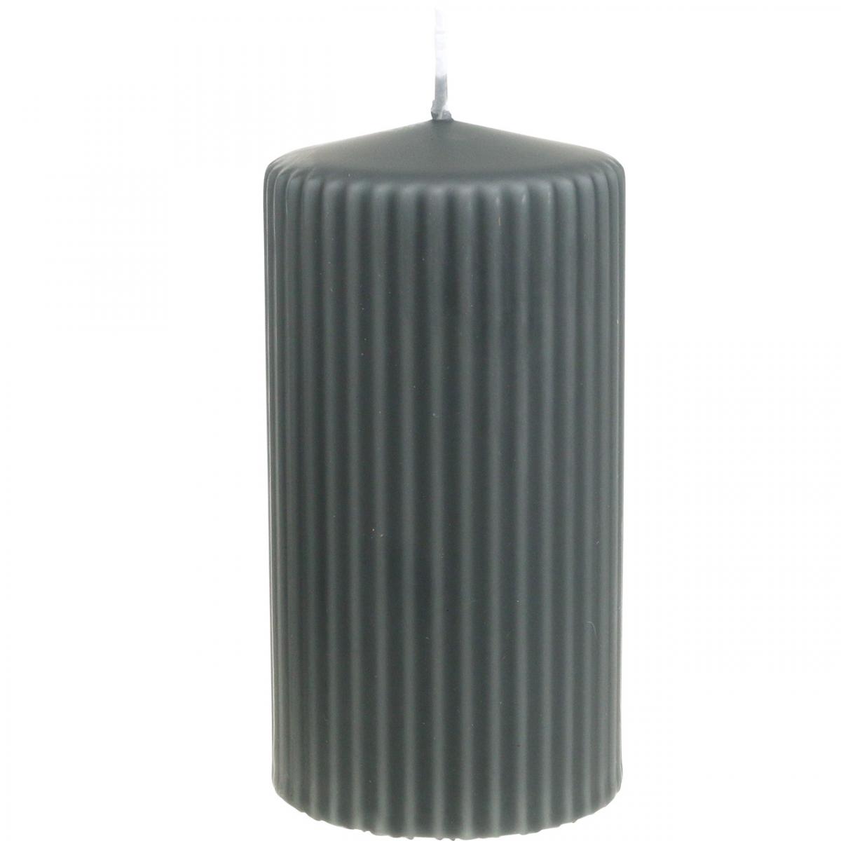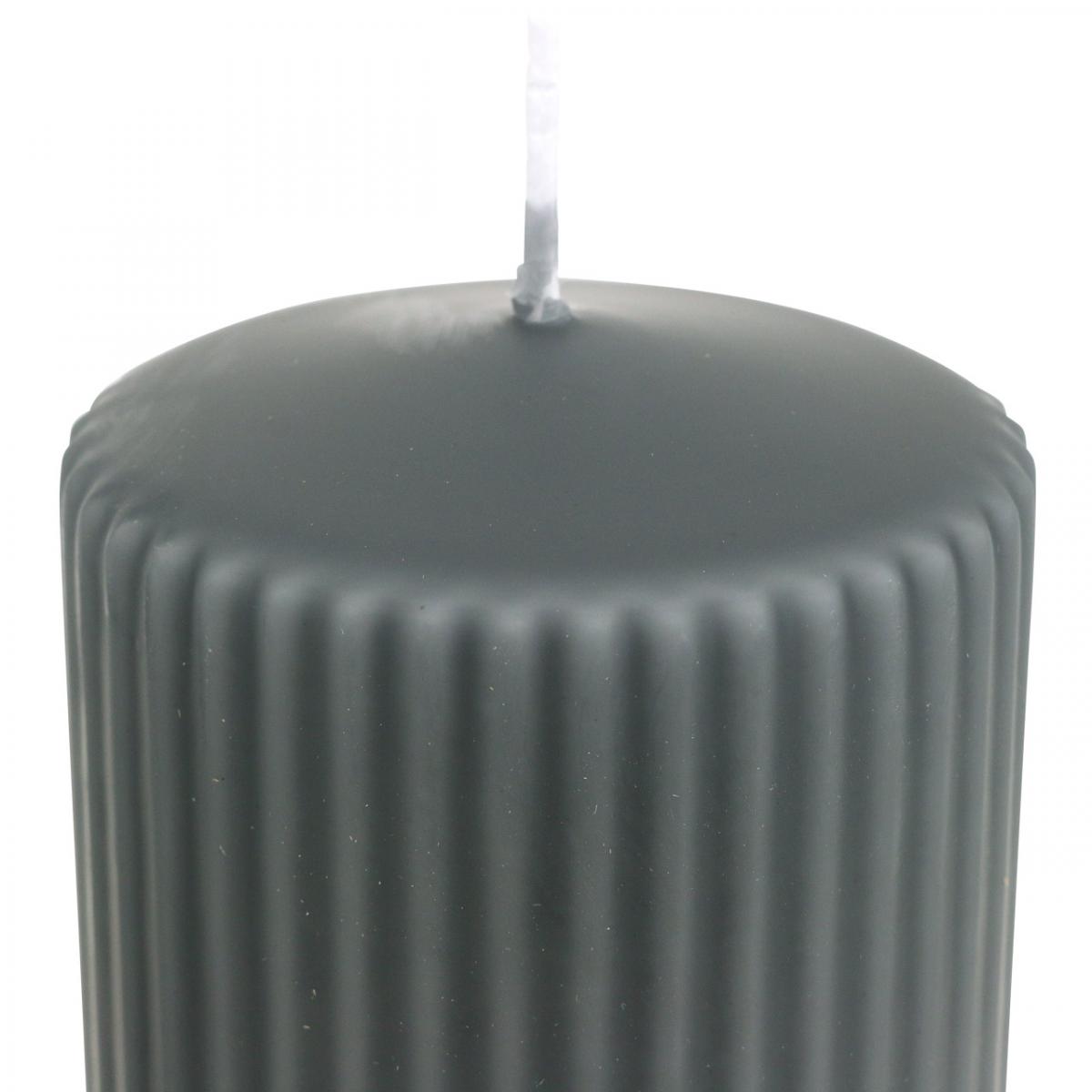 Antracitové stĺpové sviečky, drážkované, vysoko kvalitná zmes voskov, 70/130 mm, sada 4 kusov, dlhá doba horenia, všestranné použitie