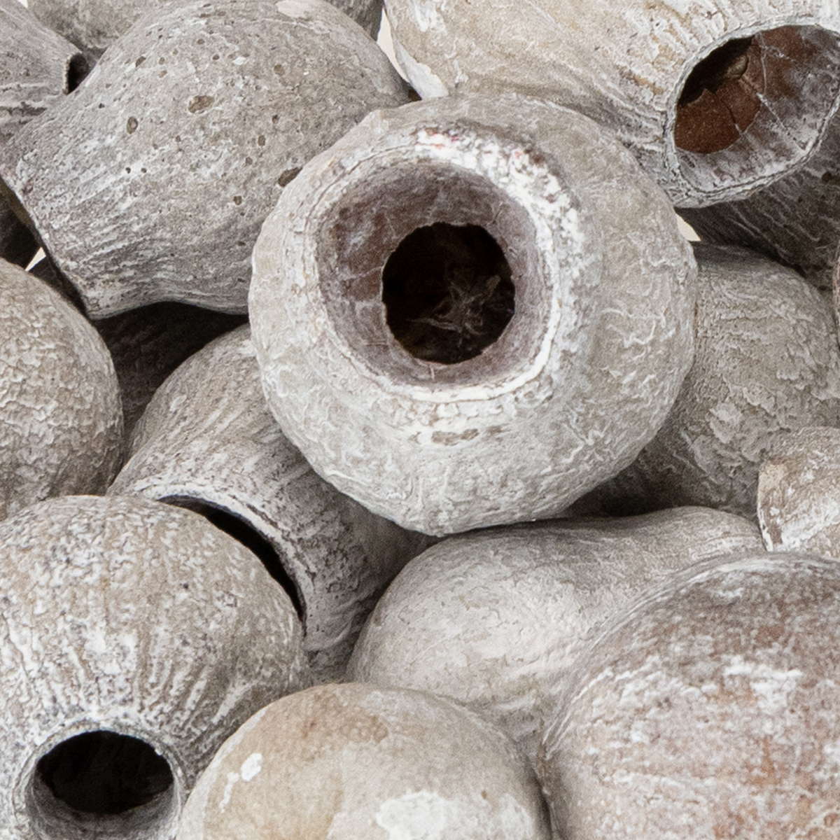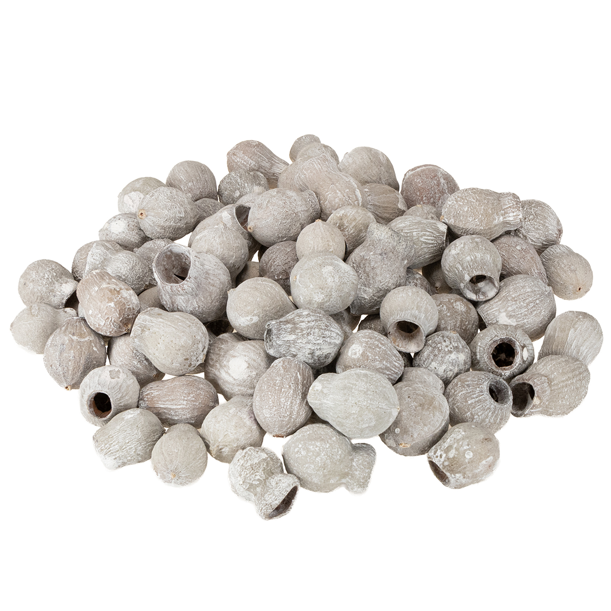 Mimoriadne prírodniny sú známe aj pod názvom zvončekové ovocie, keďže svojím telom v tvare balóna dole a užším navrchu pripomínajú malé zvončeky. Silne drevnaté plody boli starostlivo upravené a vydlabané až do jadra. Biele umývanie im dodáva elegantný, zimný vzhľad, vďaka čomu sú ideálnymi komponentmi pre elegantné pohrebné kvetinové aranžmány.
