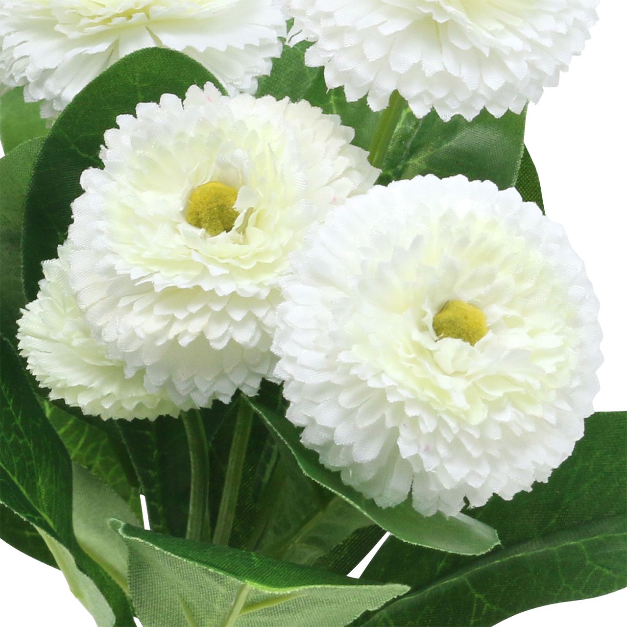 Bellisbund v bielej farbe z exkluzívneho produktového radu VIANA pozostáva z celkom 5 samostatných tyčiniek. Trs je vysoký asi 24 centimetrov a každý z 5 hláv kvetov má priemer asi 3 až 5 centimetrov. Bund an Deko Bellis dostanete v sade 2 kusov.