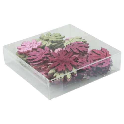 Názov produktu: Bodová dekorácia drevo jesenné lístie dekorácia na stôl fialová ružová zelená 4cm 72 ks