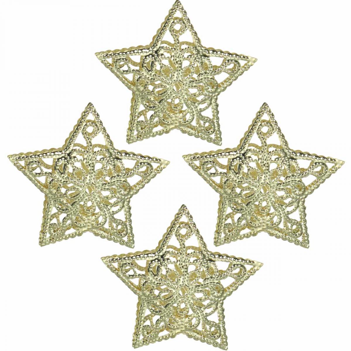 Bodová dekorácia hviezdy, nadstavec na rozprávkové svetielka, vianoce, kovová dekorácia zlatá Ø6cm 20 ks