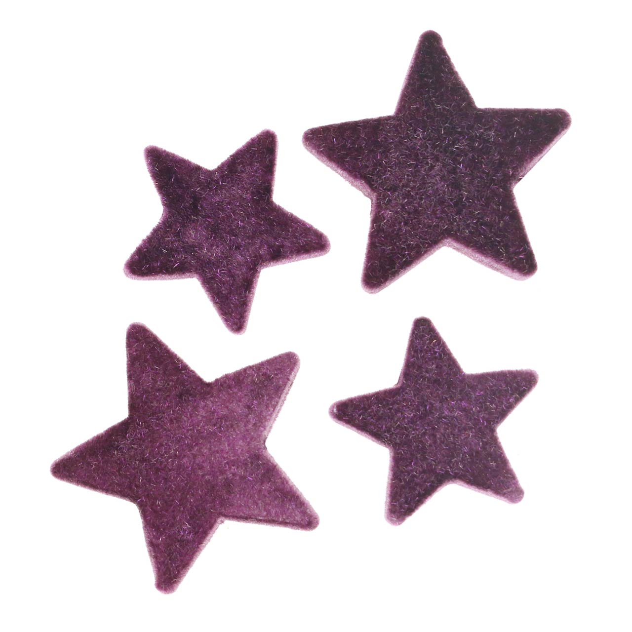 Názov produktu: Bodová dekorácia hviezdy vločkované zamatové hviezdy fialová bobuľa 4/5cm 40 ks