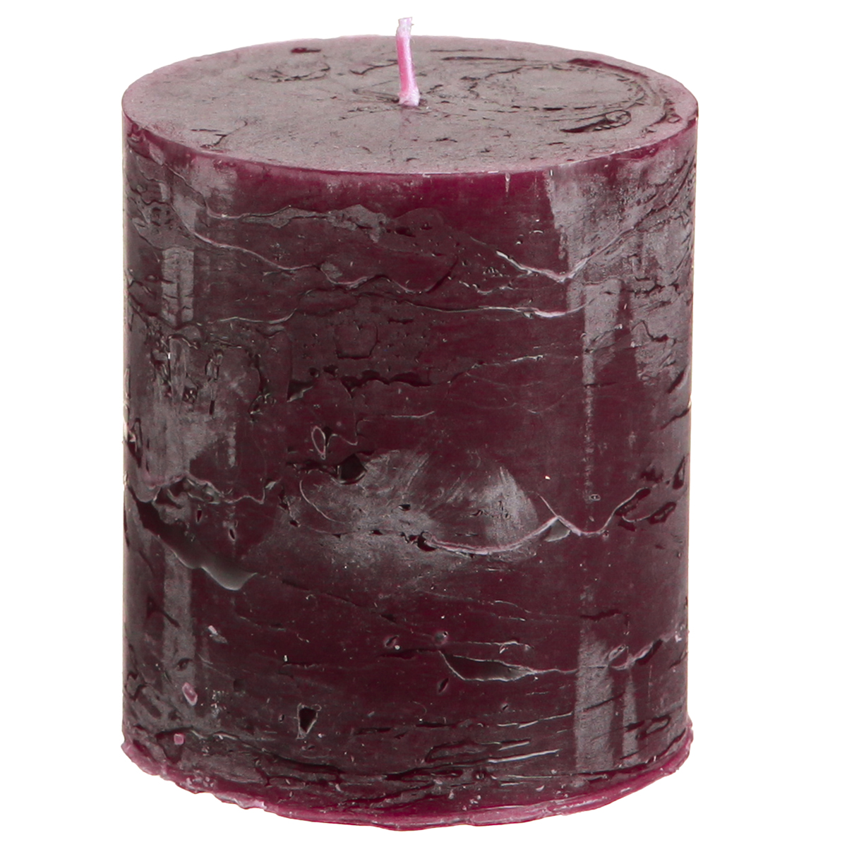 Názov produktu: Bordové stĺpové sviečky, 70x80 mm, balenie 4 kusov, pre elegantnú dekoráciu a dlhú dobu horenia.