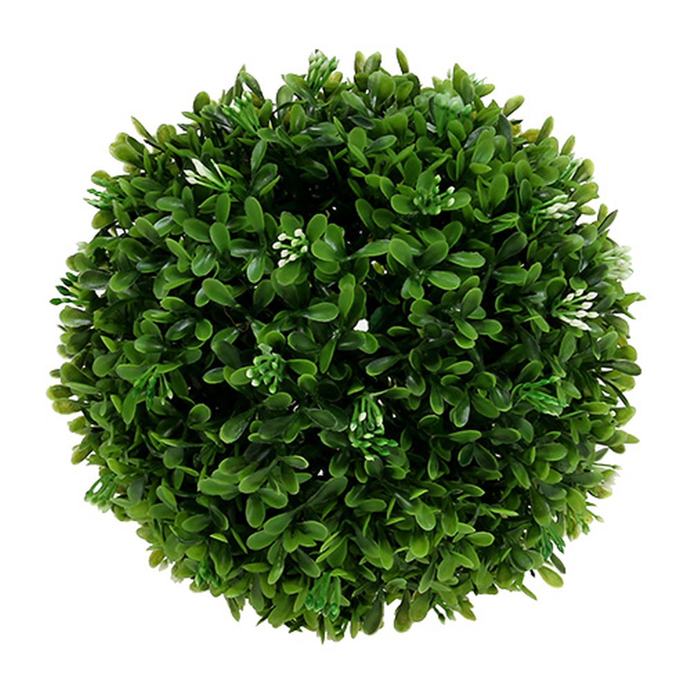 Umelá guľa z buxusu má priemer okolo 18 centimetrov a je vyrobená z kvalitného plastu odolného voči poveternostným vplyvom. Okrem sviežo zelených listov umelej rastliny môžete vždy vidieť malé uzavreté biele kvety, ktoré doslova dotvárajú celkový obraz dekoratívnej rastliny.