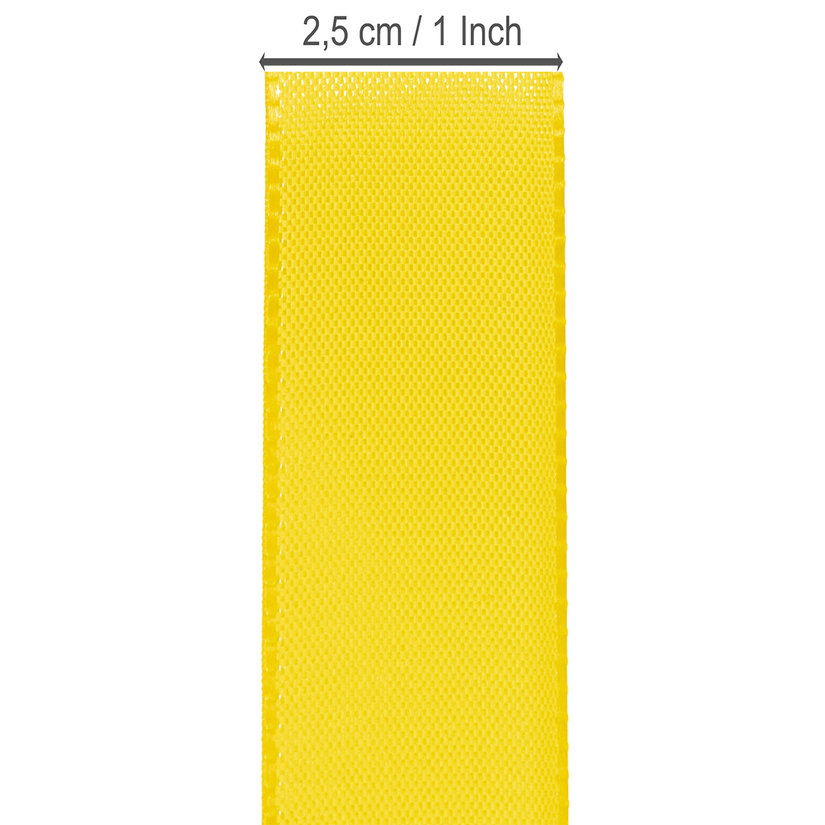 Darčeková a dekoračná stuha v žltej farbe je široká cca 25 milimetrov a dlhá cca 50 metrov.