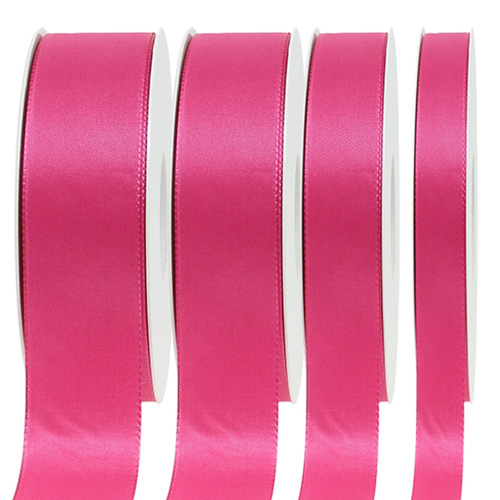 Darčeková a dekoračná stuha v ružovej farbe meria približne 50 metrov na dĺžku. Je vyrobený zo 100% polyesteru a navinutý na praktickej plastovej cievke, ktorú možno ľahko pripevniť na komerčne dostupný odvíjací systém.