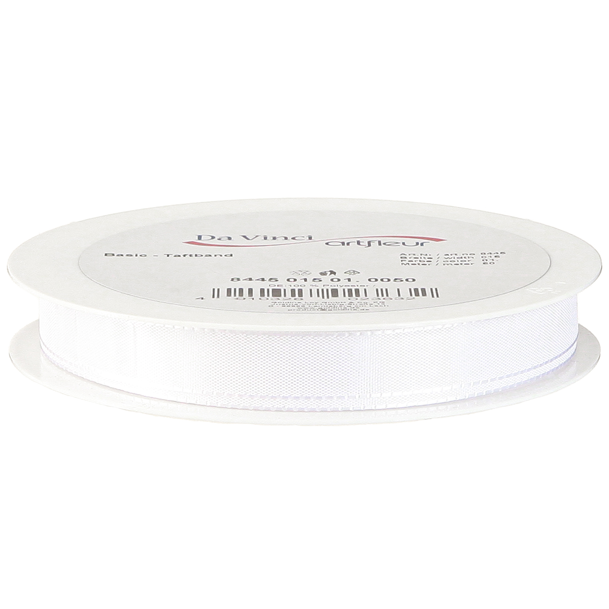 Darčeková stuha, dekoračná stuha, taftová stuha biela 15mm 50m