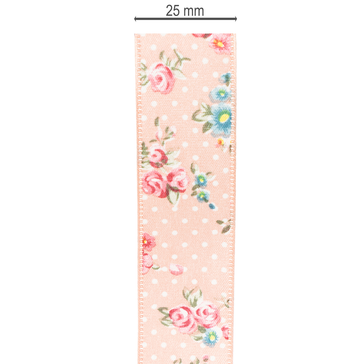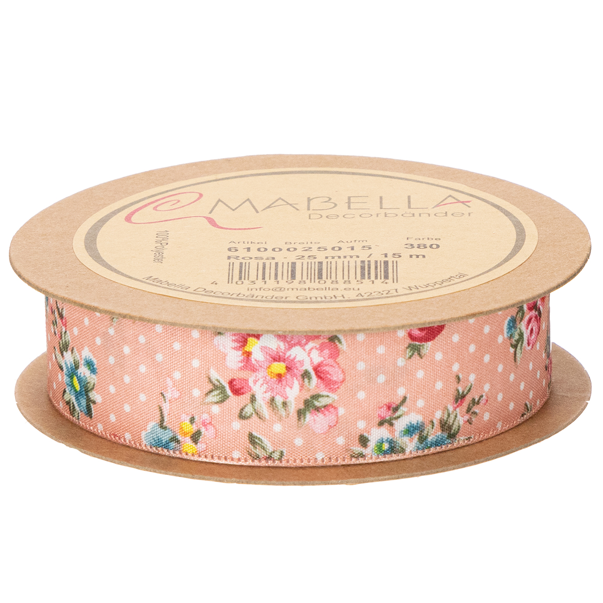Darčeková stuha s kvetinovým vzorom na hravé darčeky a tvorivé diela, šírka 2,5 cm, dĺžka 15 m