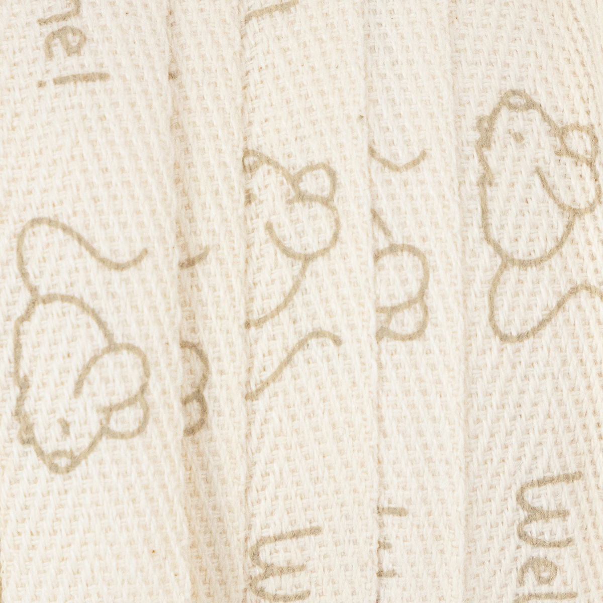 Na prúžku krémovej farby z čistej bavlny sú svetlohnedé vytlačené zvedavé myšky a pozdrav „Vitaj maličká!“. Ozdobná stuha vyrobená z prírodného materiálu bavlna je biologicky odbúrateľná a pre väčšiu udržateľnosť je na kartónovej cievke. To znamená, že výzdoba krstu nevyžaduje žiadnu plastiku.