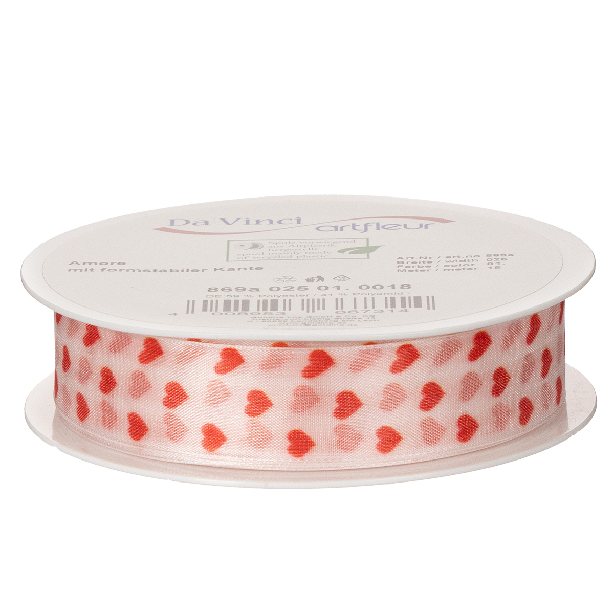 Názov produktu: Darčeková stuha so srdiečkami, ideálna na kreatívne balenie a osobné darčeky, šírka 2,5 cm, dĺžka 15 m