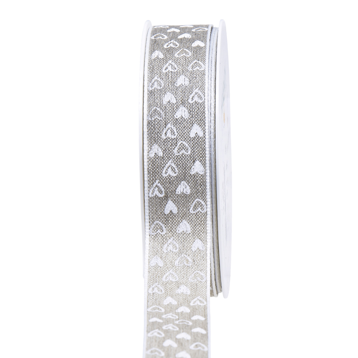 Darčekovú stuhu s romantickým vzorom pokrývajú rôzne malé srdiečka. Biele srdiečka sú precízne vytlačené na kvalitnej béžovej stuhe. Biele okraje štýlovo rámujú ozdobnú stuhu.