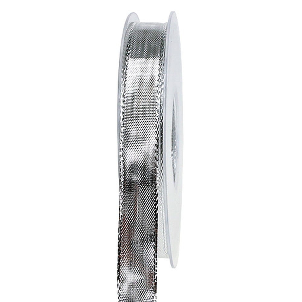 Darčeková stuha strieborná s drôteným okrajom 15mm 25m