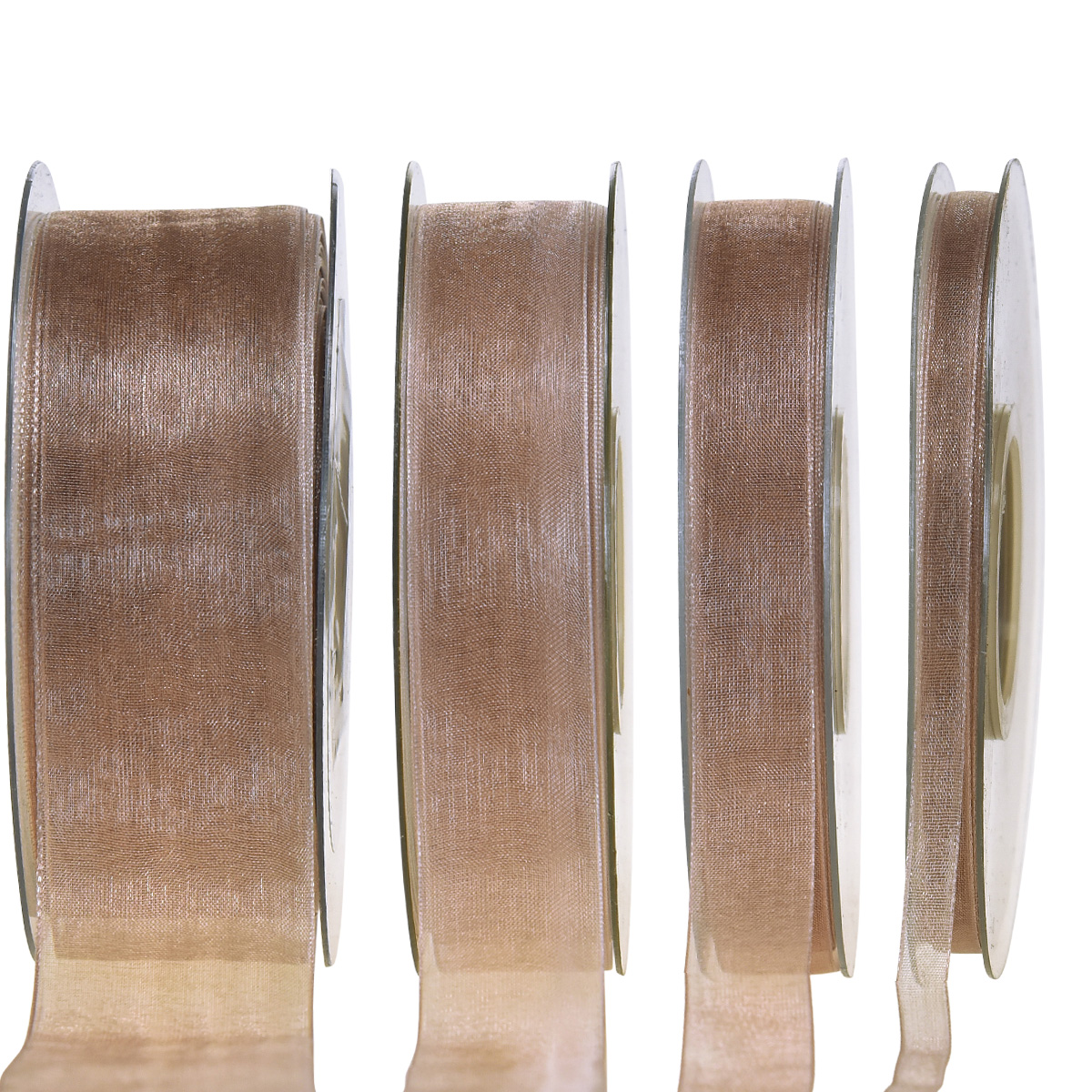 Darčeková stuha z organzovej stuhy, béžová stuha s okrajom, taupe 50 m