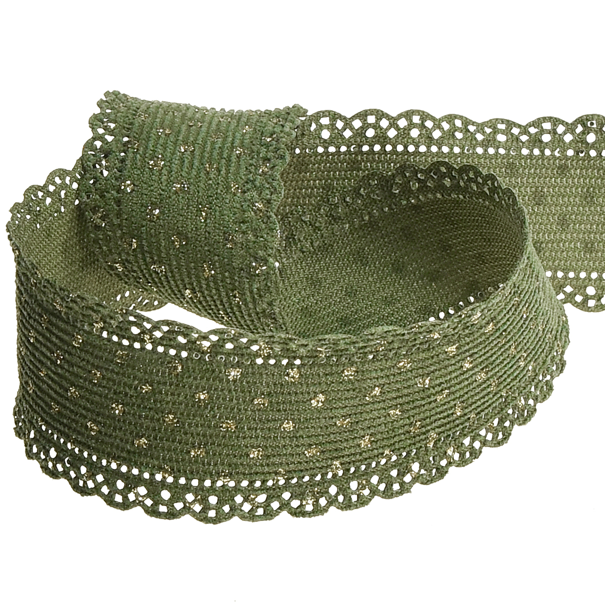Zvýraznite svoje darčeky alebo dolaďte svoje dekorácie našou vynikajúcou ozdobnou stuhou: zelenou stuhou so zlatými bodkami a čipkou. Vrchol v každom darčekovom balení a každej dekoratívnej tvorbe!