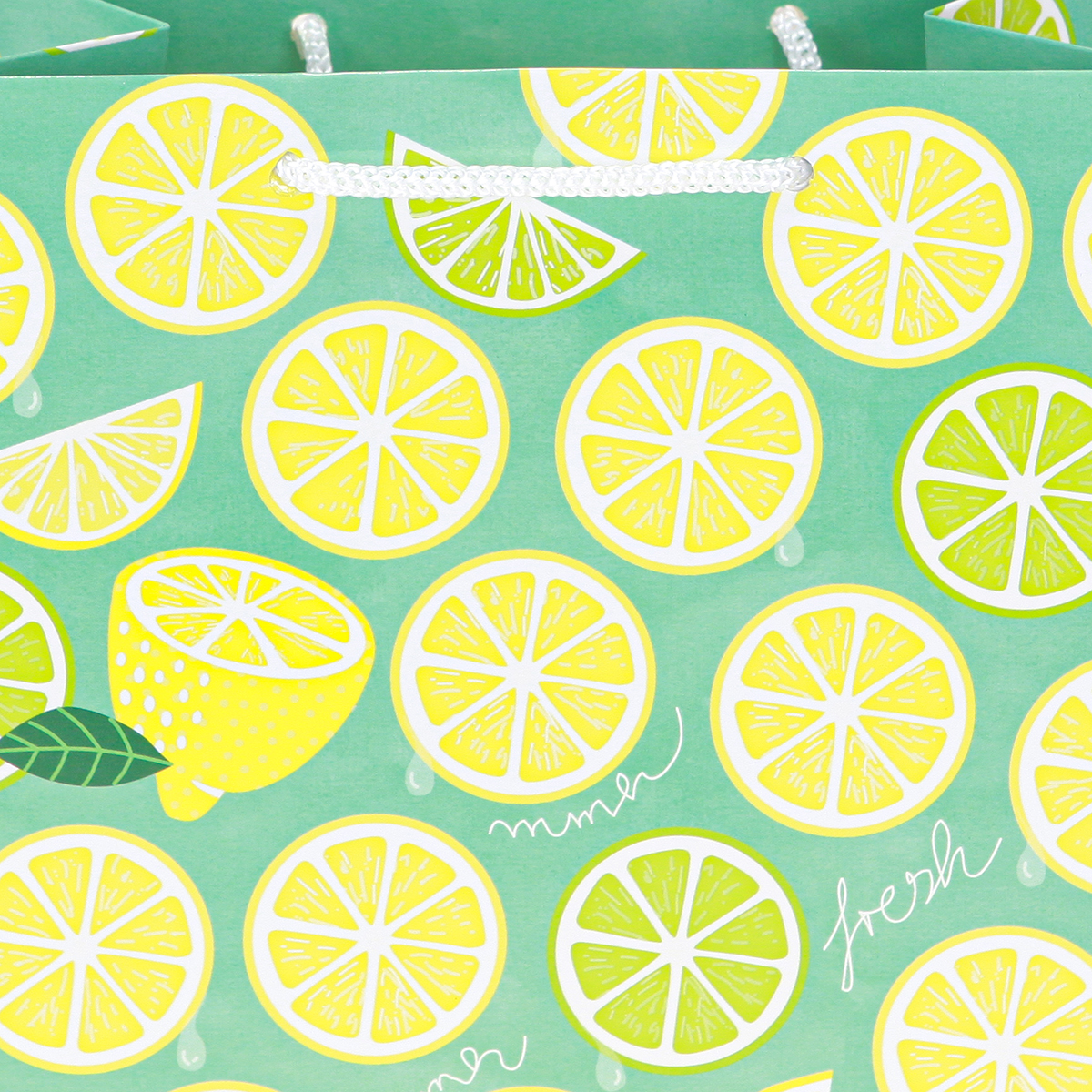Urobte radosť svojim blízkym našou letnou papierovou darčekovou taškou. So sviežim citrónovým dizajnom, ktorý pripomína slnečné letné dni, táto darčeková taška okamžite prináša dobrú náladu a farebný nádych. Taška je vyrobená z kvalitného natieraného papiera. Očarujúce žlté a zelené tóny citrónového vzoru predurčujú tašku na letné párty a narodeninové oslavy alebo na štýlové obdarovanie malého darčeka. Vďaka pevným bielym textilným šnúrkam sa ľahko prenáša a vystužená základňa zaisťuje, že vaše darčeky možno odovzdať bezpečne a elegantne.
