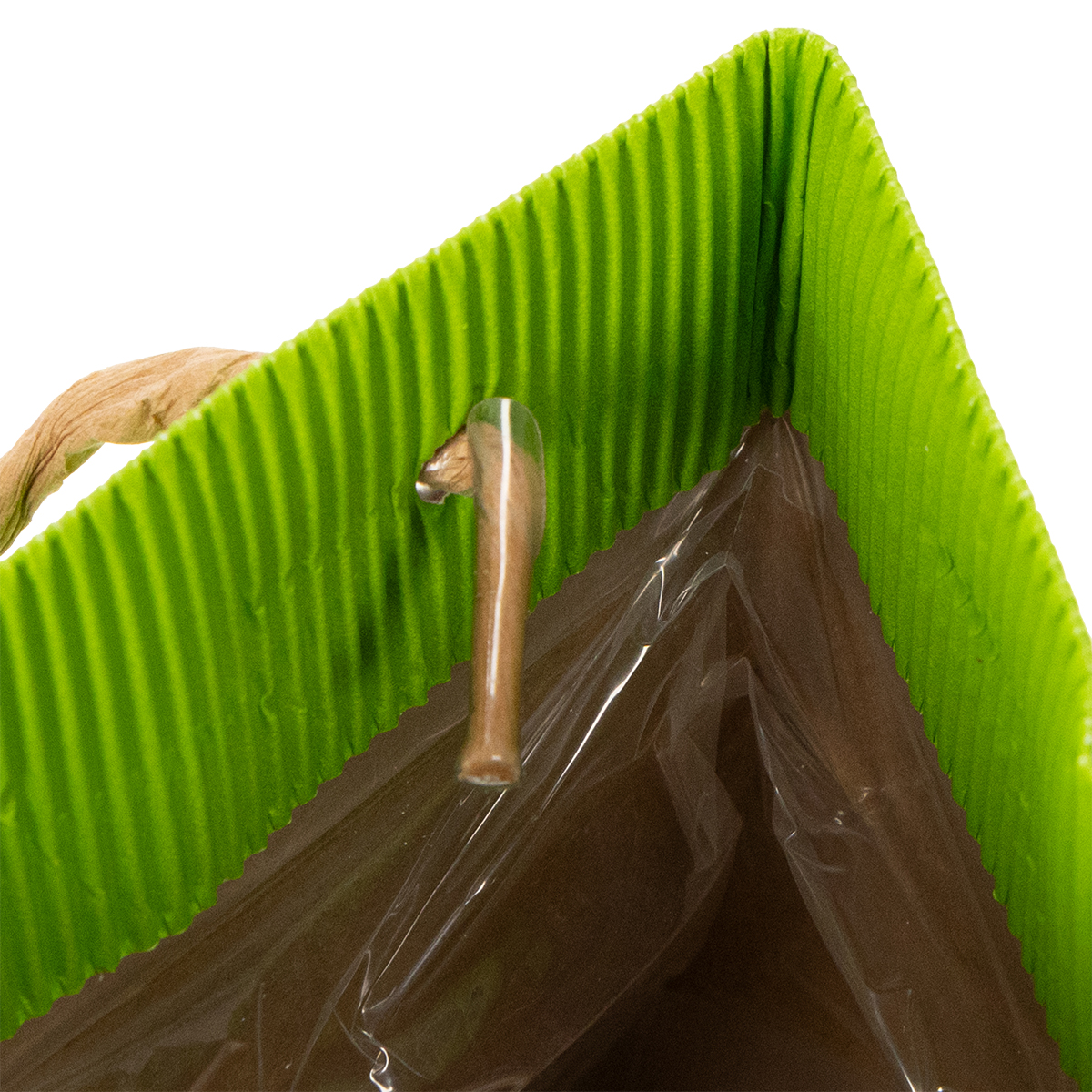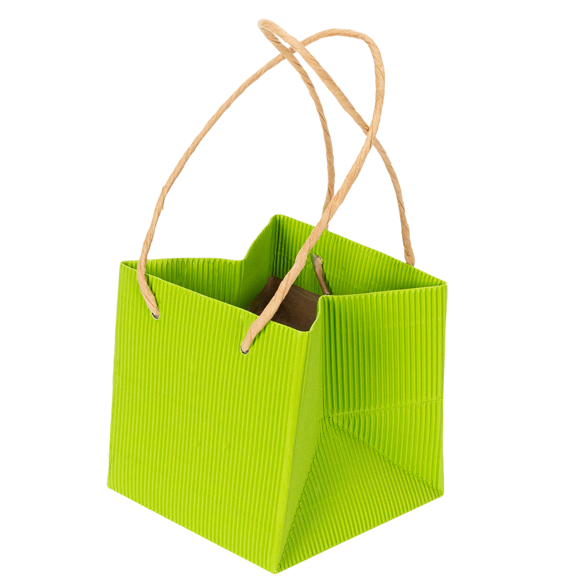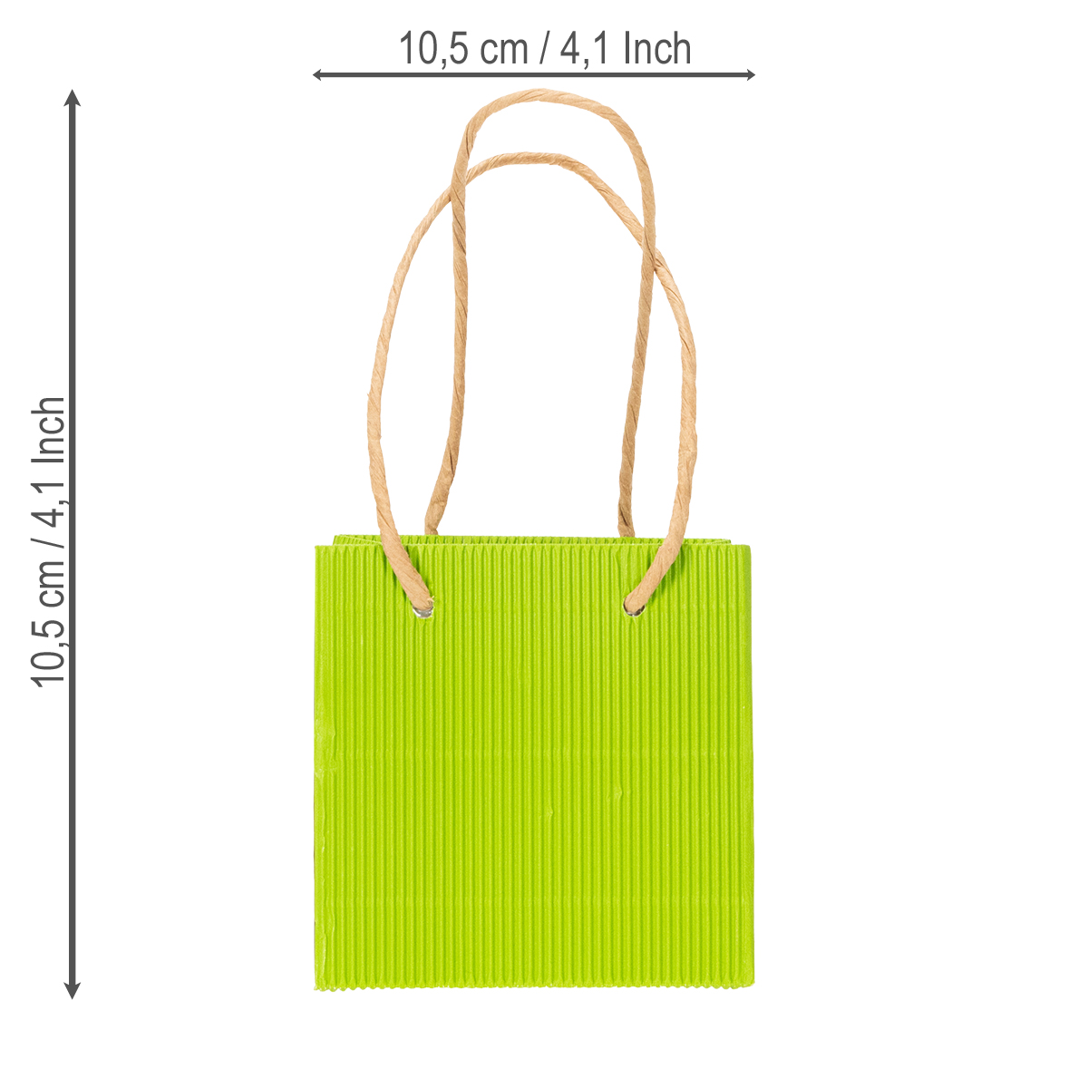 Papierová taška je súčasťou sady 8 kusov, každá s 2 vrecúškami vo farbe oranžovej, zelenej, žltej alebo ružovej. Rozmery každej tašky sú približne 10,5 x 10,5 x 10,5 centimetra. Darčeková taška je stabilná aj vďaka tomu, že jej povrch je rebrovaný a znesie tak väčšiu váhu. Dno je navyše vystužené dodatočným kartónom. Veľmi šik pôsobí kabelka aj vtedy, ak ju naplníte domácimi koláčikmi alebo inými pochúťkami a potom si ich veľmi štýlovo vezmete so sebou na stretnutie s priateľmi.