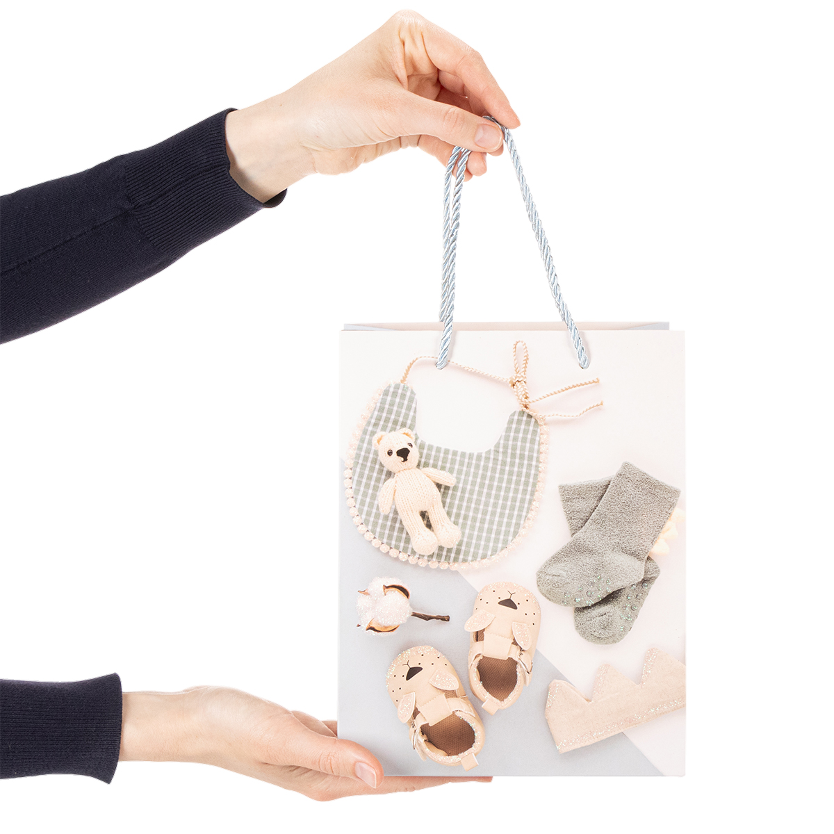 Táto darčeková taška pre chlapcov predstavuje dokonalú rovnováhu medzi funkčnosťou a pôvabným dizajnom. Vďaka motívom vhodným pre deti a jemným farbám sa harmonicky hodí do každej oslavy. Každá taška je vybavená pevnými rukoväťami, vďaka ktorým je preprava darčekov bezpečná a pohodlná. Či už ide o rozkošný detský outfit, pôvabnú hračku alebo malé dekoratívne predmety – všetko má svoje miesto. Predstavte si, ako tieto krásne tašky upútajú pozornosť na darčekovom stole a prinesú radosť čerstvým rodičom.