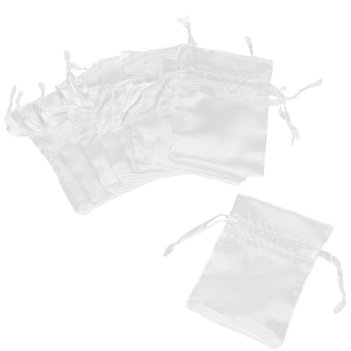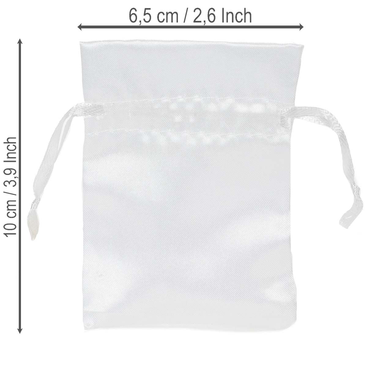 Darčekové tašky, saténové vrecúška, biele, 6,5 x 10 cm, 10 kusov