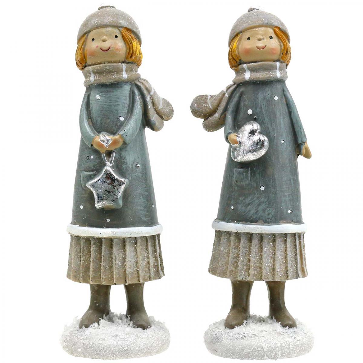 Deko figúrky zimné detské figúrky dievčatá V14,5cm 2ks
