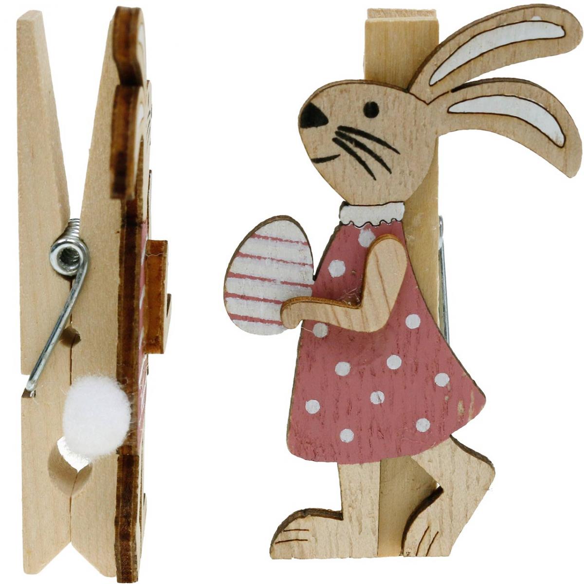 Názov produktu: Deko klipy králiky Veľkonočné zajačiky ružové, biele drevo Veľkonočná dekorácia 4 kusy