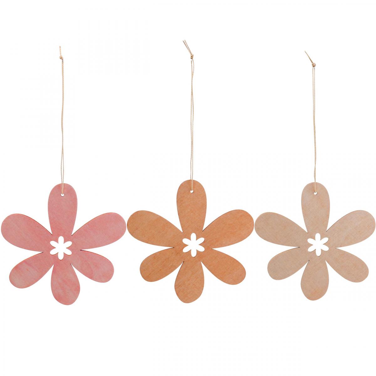 Deko kvetinový drevený prívesok drevený kvietok oranžová/ružová/žltá 12 kusov