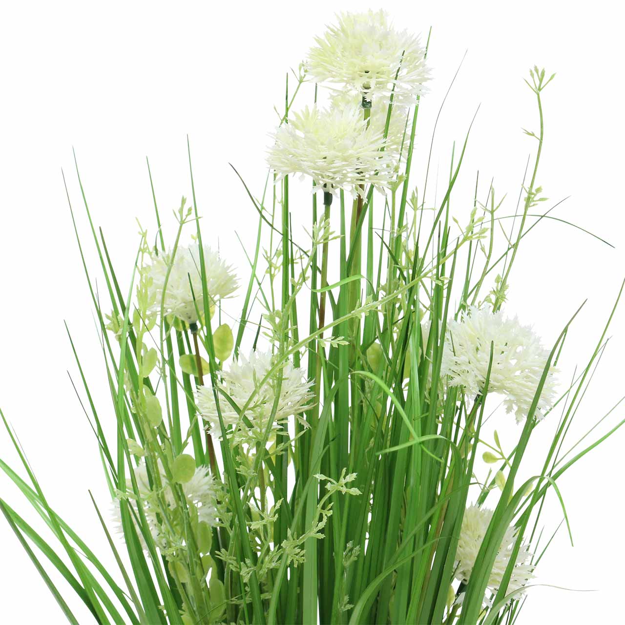 Deko kytica s lúčnymi kvetmi zelená, biela umelá 51cm