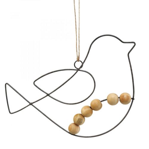 Jarná dekorácia z kovu s drevenými korálkami je šik dekoračný vešiak na stenu, do venca, ale aj ako dekorácia na okno. Ozdobný prívesok vyzerá rovnako pekne sprava aj zľava, takže vtáčika môžete zavesiť aj na strop doprostred izby ako závesnú dekoráciu.