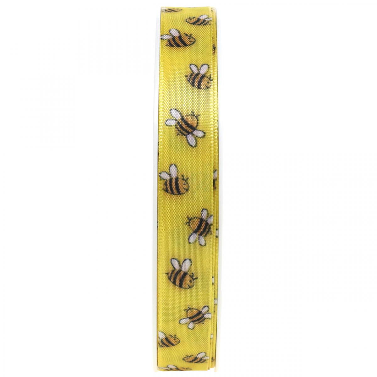 Deko stuha jarná žltá, stuha s včielkami B15mm L20m