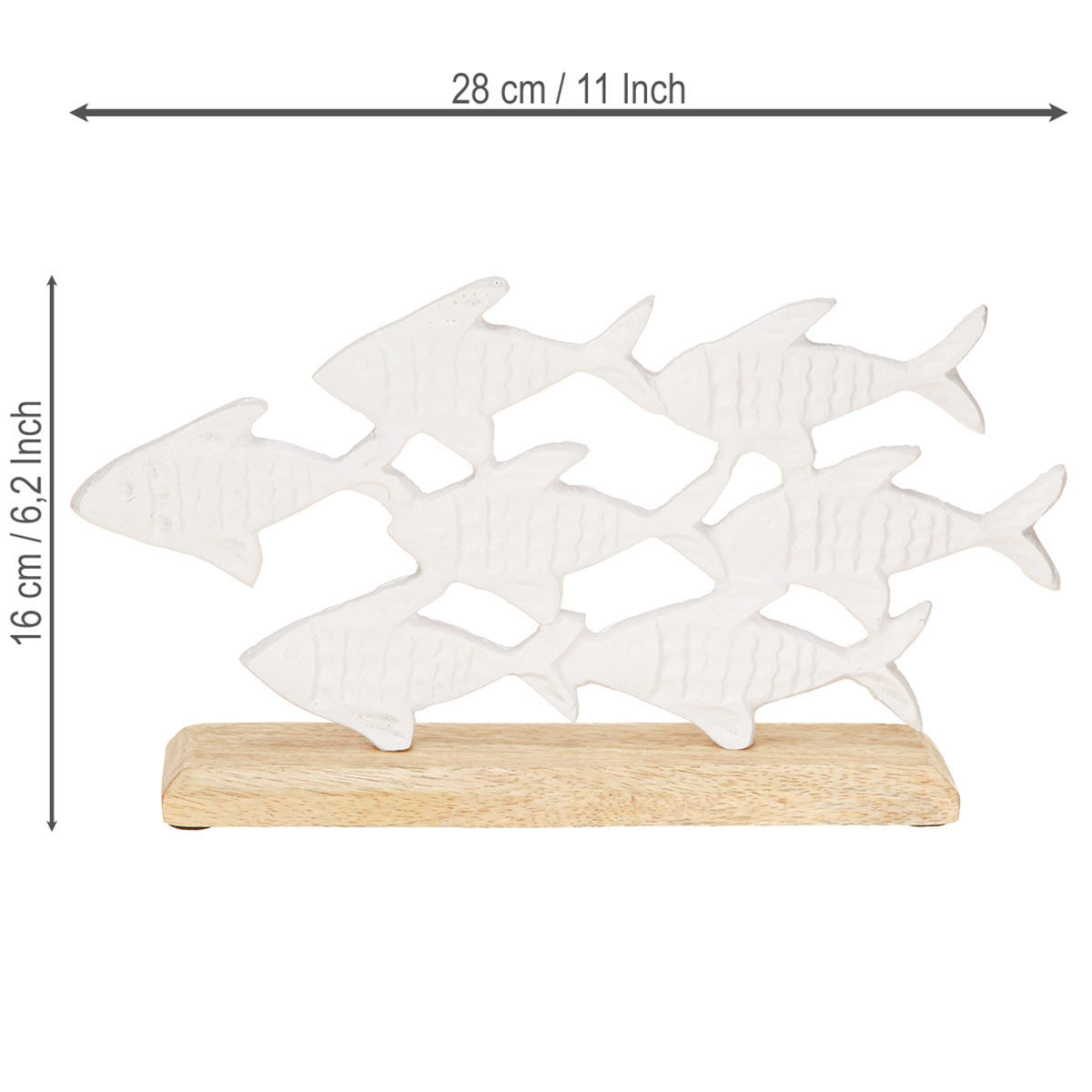 Názov produktu: Dekorácia kŕdeľ rýb Ryba Biely kov Drevo Prírodné 28x16cm