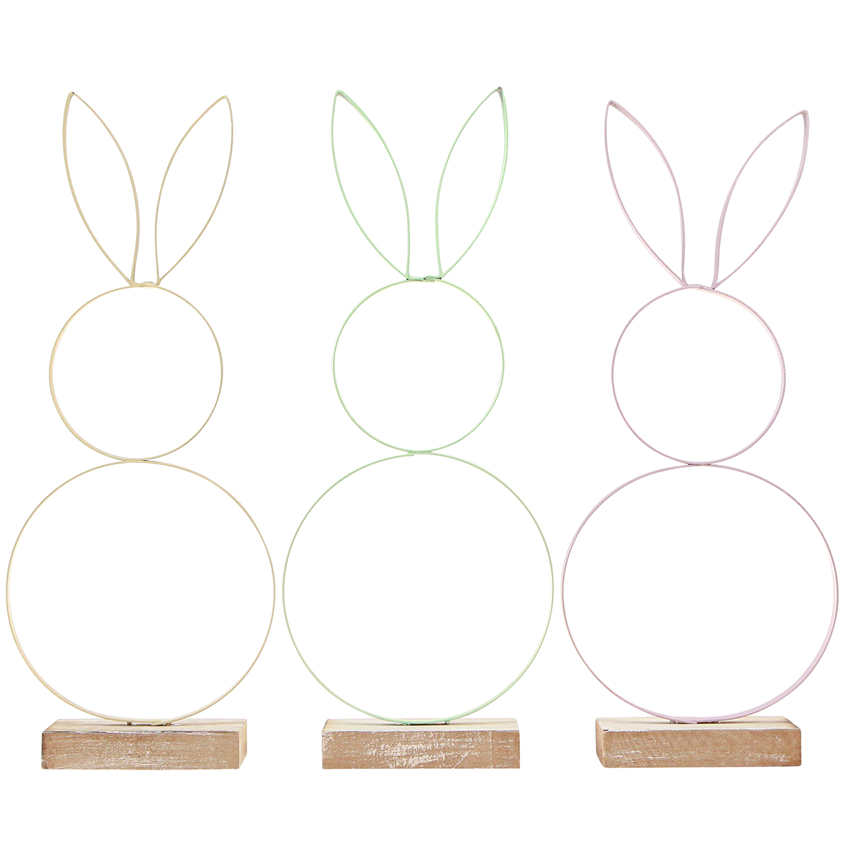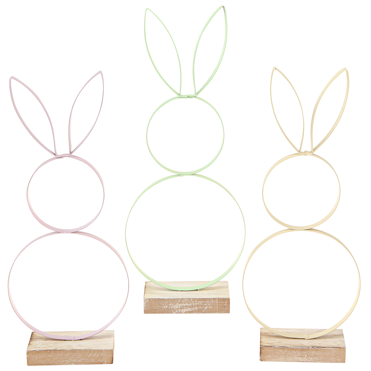 Názov produktu: Dekorácia králik Kov Drevo Prírodná Žltá Mint Ružová V28cm 3 ks