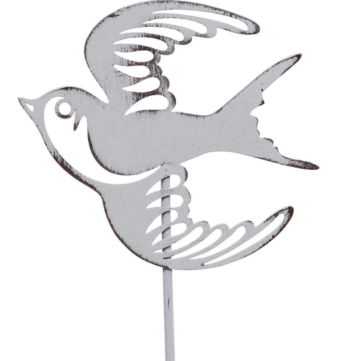 Dekorácia lastovička, dekorácia na stenu z kovu, vtáčiky na zavesenie biela, strieborná shabby chic V47,5 cm