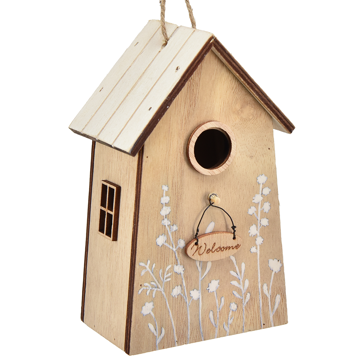 Názov produktu: Dekorácia na zavesenie domček pre vtáčiky biely prírodný 14,5cm 2 ks