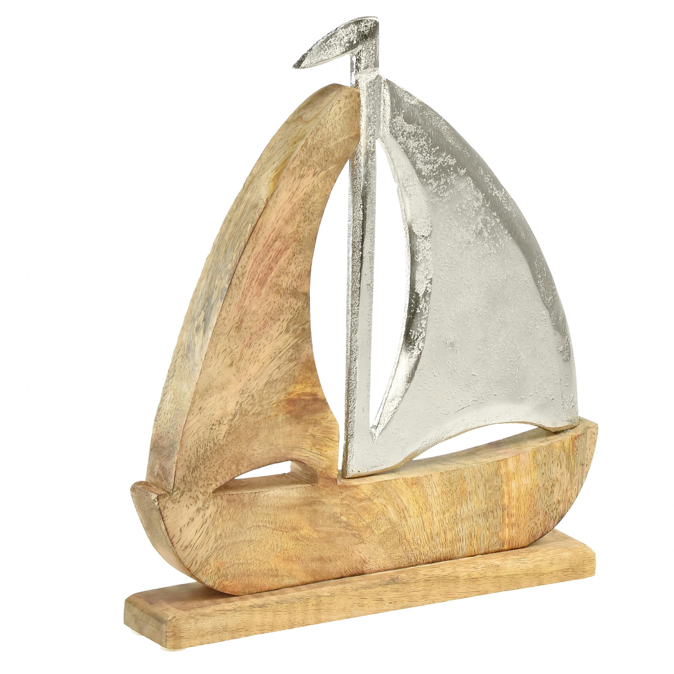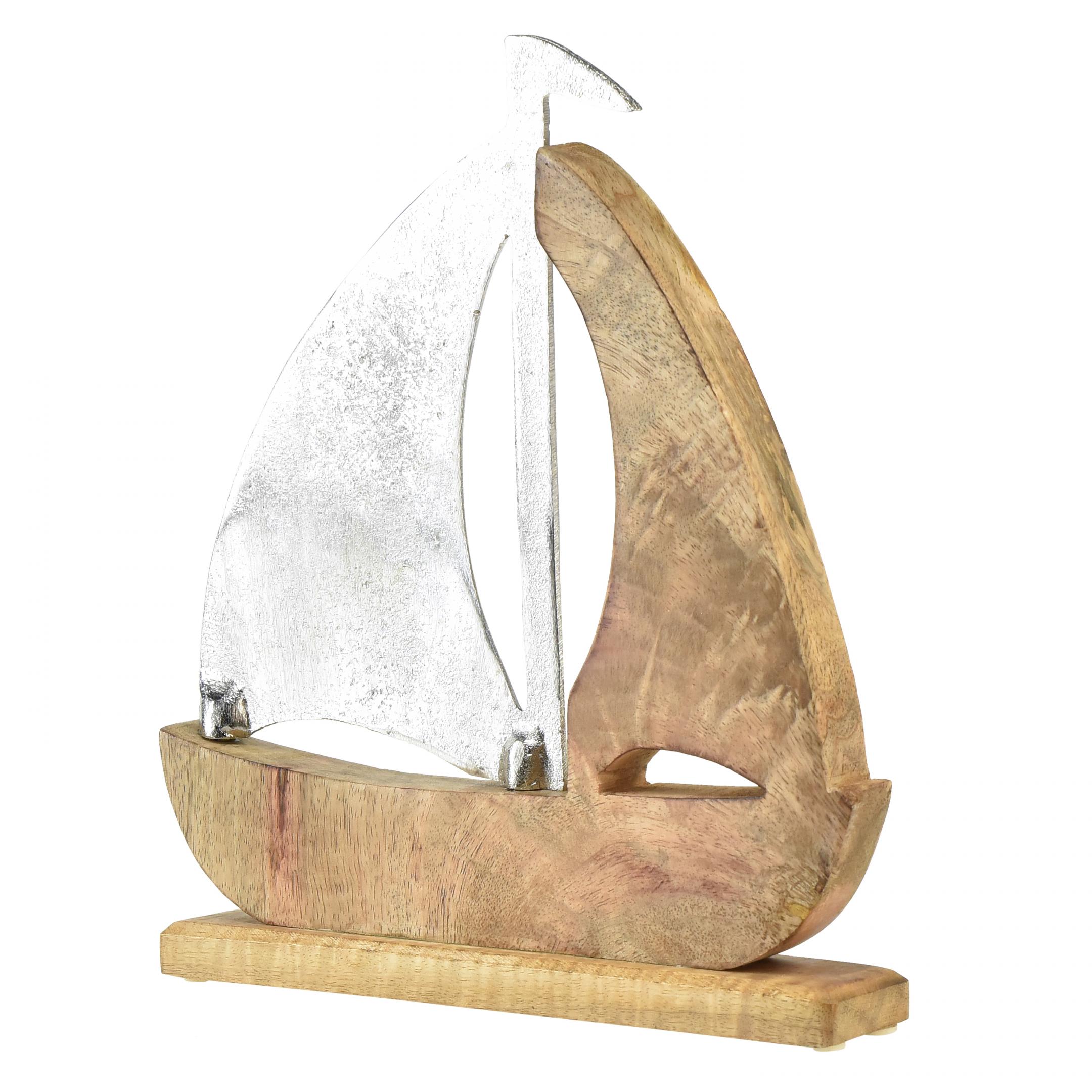 Dekorácia plachetnice prírodné strieborné mangové drevo 25,5x4x28,5cm