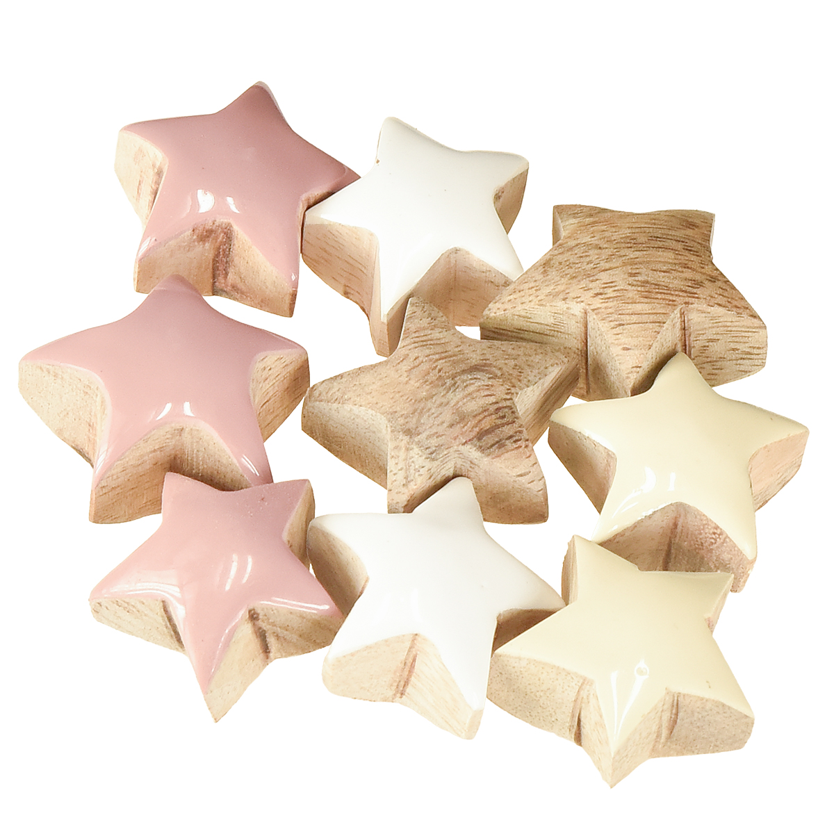 Názov produktu: Dekorácia Scatter hviezdy drevené hviezdy ružová biela žltá Ø3cm 9 ks
