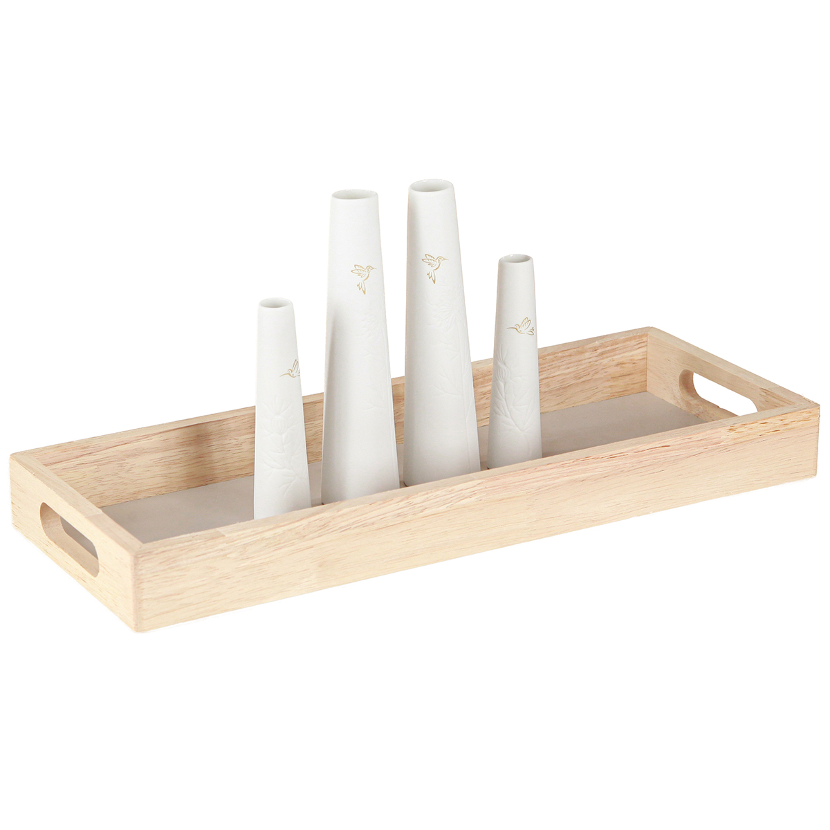 Dekoratívny drevený podnos s keramickými mini vázami: elegancia a všestrannosť pre váš domov