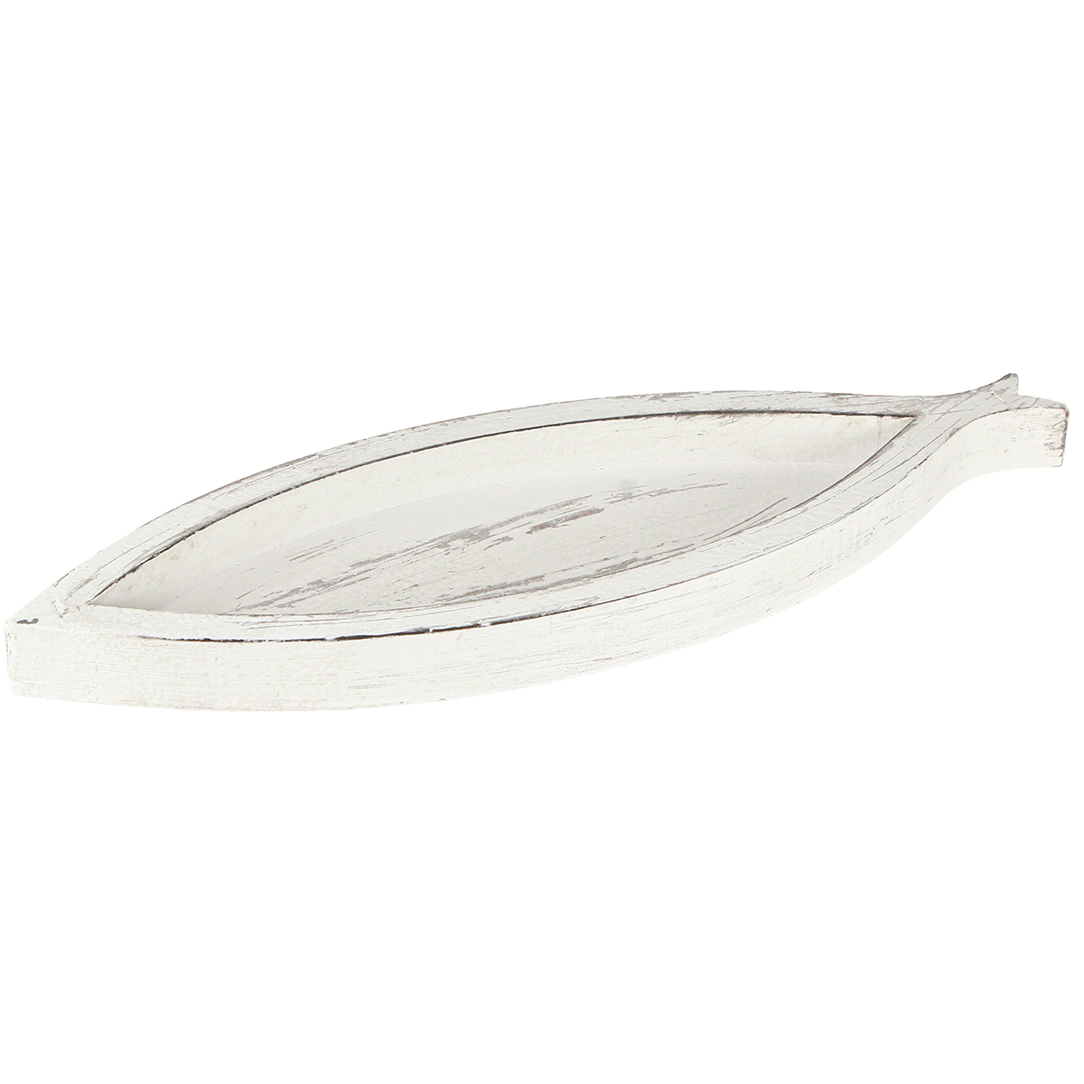 Biely dekoratívny drevený podnos v tvare ryby prináša svieži, námornícky šarm do vášho domova. Táto štýlová drevená dekorácia, ideálna do obývačky alebo ako dekorácia na balkón, v sebe spája prirodzenú krásu dreva s trendy shabby chic vzhľadom. Každý podnos je umelo navrhnutý v tvare ryby a je vyrobený z vysoko kvalitného dreva, ktoré bolo natreté bielou farbou pre moderný, no zároveň rustikálny vzhľad. Jemne priesvitná prírodná farba dodáva každému kúsku jedinečný charakter. Tieto drevené podnosy obzvlášť dobre ladia s námornou tematikou a modrými dekoratívnymi prvkami. Či už ich použijete ako akcent na dekoráciu námorného stola, alebo ako základ pre kreatívne DIY projekty, tieto dekoratívne podnosy sú všestranným a estetickým doplnkom pre váš domov.