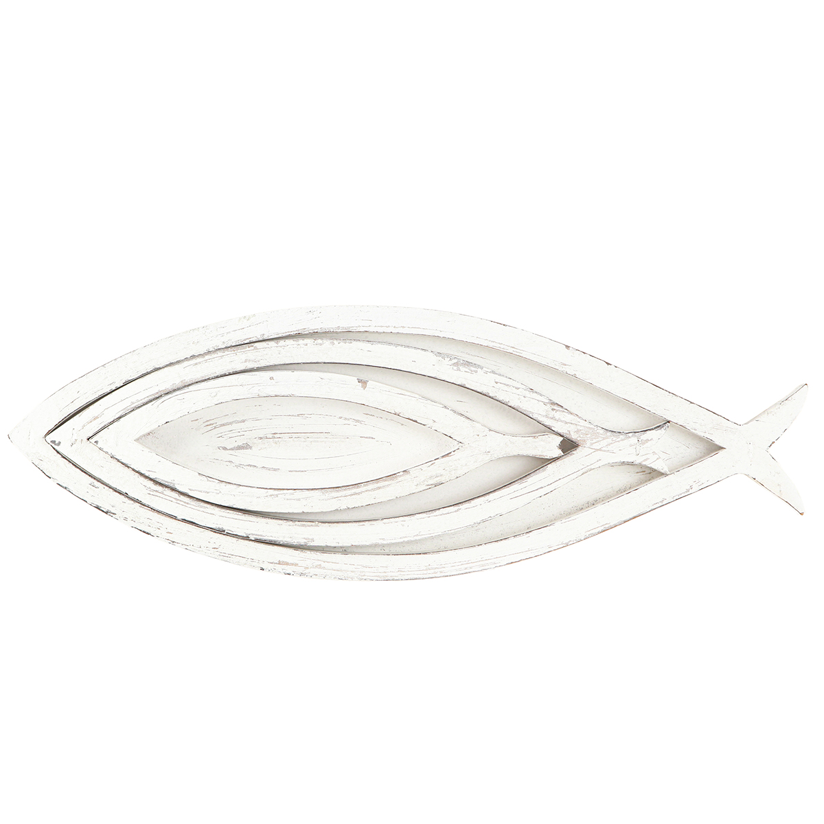 Dekoračný podnos Drevo Ryba Biely Prírodný L30/40/50cm Súprava 3 ks