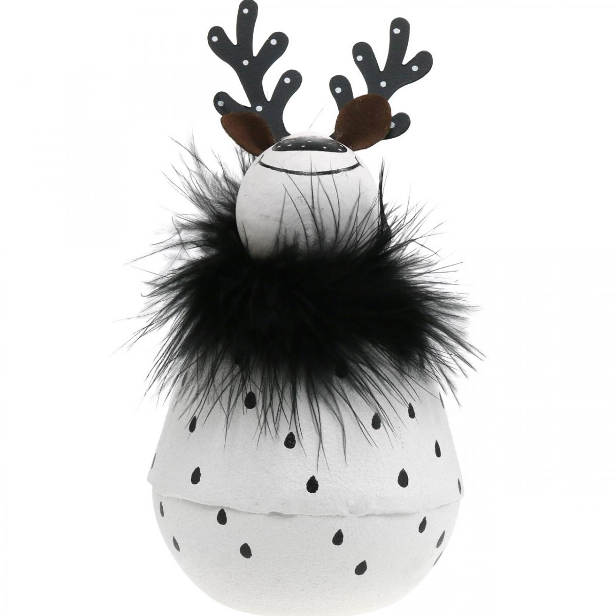 Názov produktu: Dekoračný sob, vianočná dekorácia, ozdobná figúrka z kovu, adventná biela, čierna V15,5cm Ø8cm