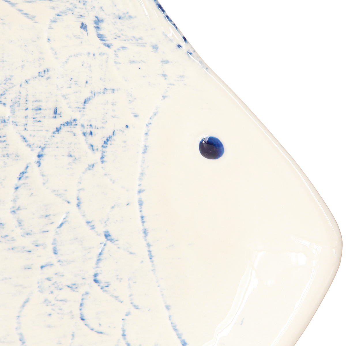 Dekoračný tanier ryba keramická stolová dekorácia modrá biela 30×22cm