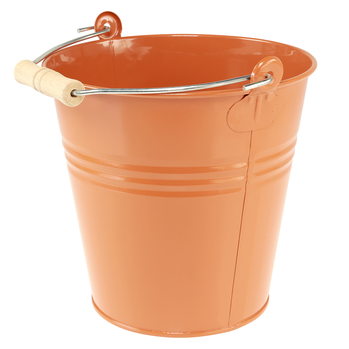 Oranžovo-hnedý kvetináč je navrhnutý ako vedro. Kovová dekorácia vnáša do vašej kvetinovej výzdoby závan čerstvého vzduchu!