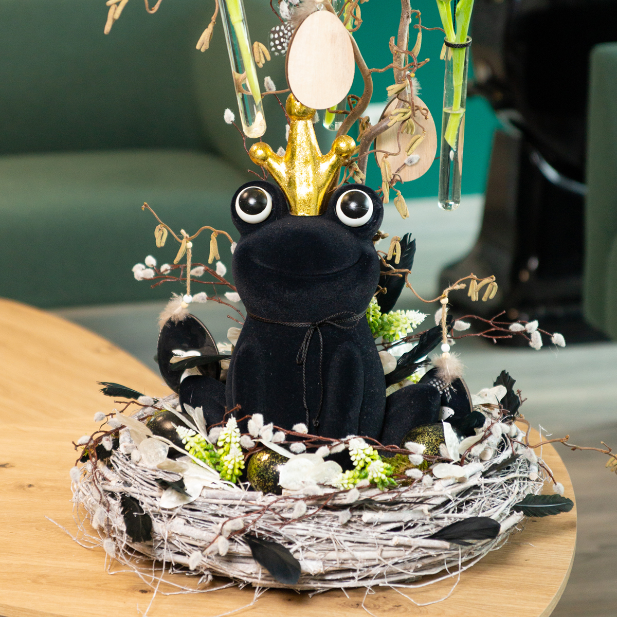 Či už ako dekoratívna žaba doma alebo ako magický dekoratívny doplnok v obchodných priestoroch, čierny žabí princ bude vrcholom vašich dekoračných aranžmánov všade!