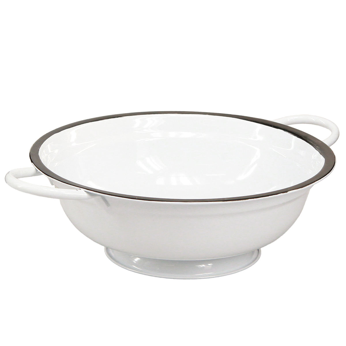 Naše kovové dekoratívne misky v bielo/čiernej farbe spájajú štýlovú eleganciu s nostalgickým šarmom a sú dokonalým spoločníkom pre vaše projekty na dekoráciu stolov a miestností. Tieto kovové misky zaujmú svojim jemne zakriveným tvarom a sofistikovaným smaltovaným vzhľadom, ktorý okamžite dodá každej miestnosti vintage nádych. Všetky tri misky majú priemer približne 20,5 cm a sú všestranné. Či už ako okrúhla miska na pestovanie s láskou naaranžované kvetinové aranžmány alebo ako štýlový úložný priestor na drobné doplnky – tieto misky vždy zvýraznia.