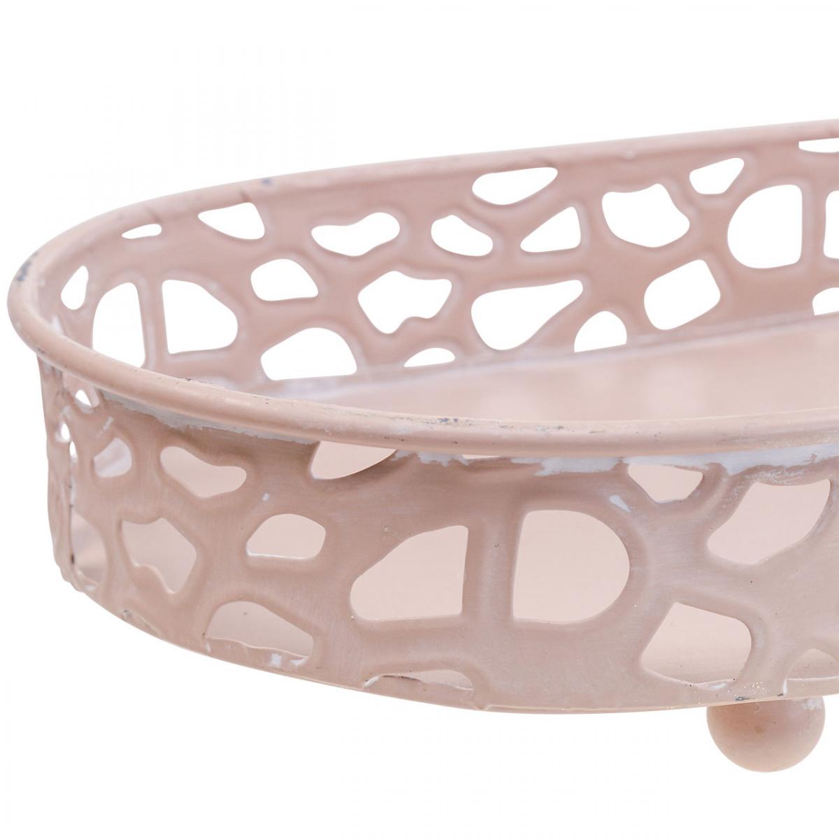 Táto kovová dekoratívna miska elegantne vytvára scénu pre drobné doplnky ako stolové dekorácie. Oválna miska s nožičkami vo svetlej pastelovej ružovej je obľúbená nielen na jar a Veľkú noc.